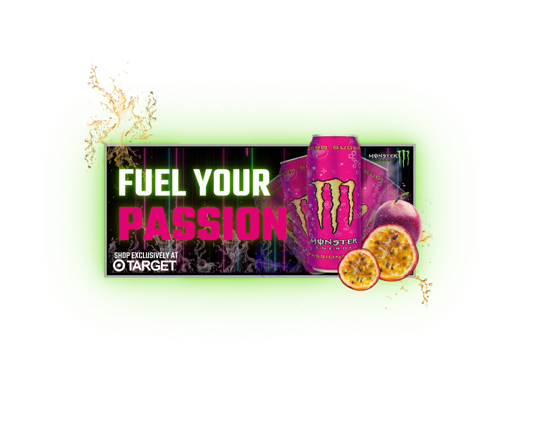 At Monster green isn’t just a color, we’ve combined our passion for life and the best tasting beverages with our passion for the planet. This Earth Day our limited edition passionfruit concoction will be available exclusively through Target.